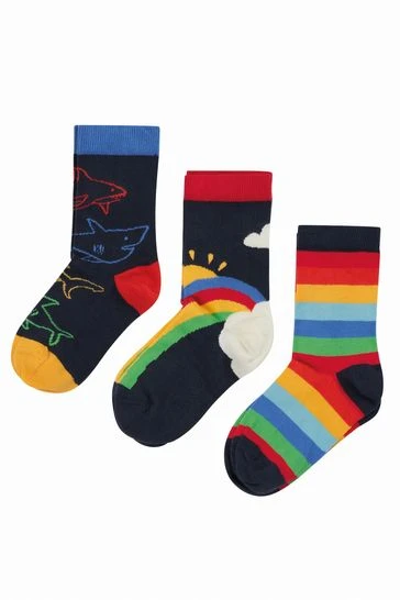 Organic cotton three pack of coordinating socks. Perfect for sensitive skin, these durable favourites will be your pick of the day! Each pair has a different character or design, all in a similar colourway.