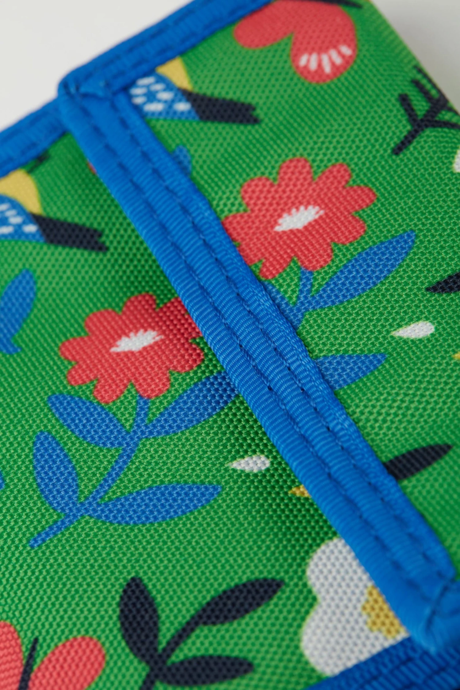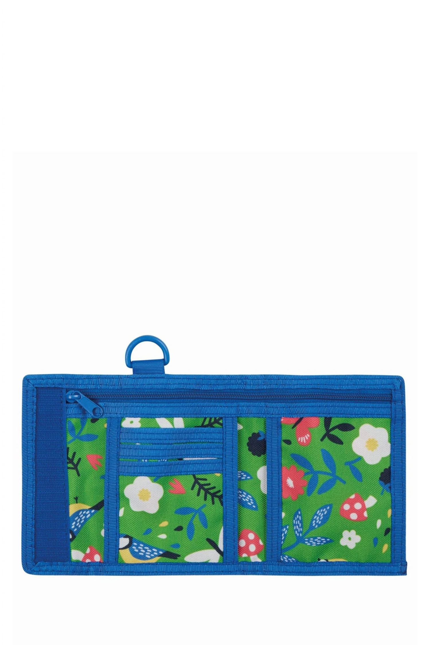 Made from recycled material. Features outer zipped pocket with Frugi cloud zip pull, D-ring which interacts with a clip in the Frugi Adventurer Backpack. Internal features: large zipped internal pocket and multiple card pockets.