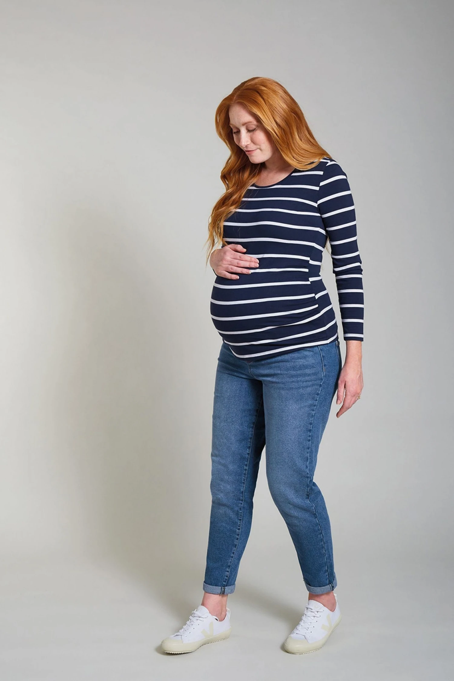 Frugi Maternity Organic Navy Blue Stripe Long Sleeve Top