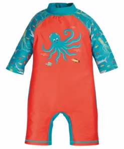 Ready for the beach, pool or surf! The Frugi sun-safe suit, passes British sun-safe standards UPF 40+. Made with recycled fabric, that meets UPF 50+. Features full zip fastening for easy peasy dressing with zip guard to protect delicate skin. Pair with a matching swim hat for ultimate sun protection.