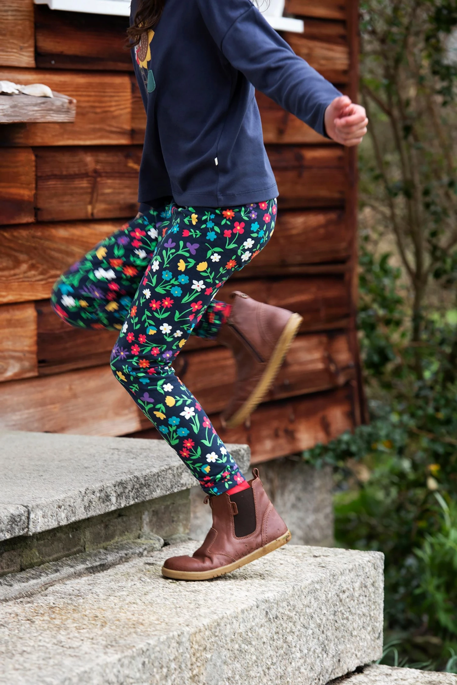 Printed floral leggings on an Indigo base. Made with a touch of elastane, no more baggy knees!