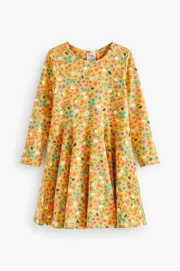 A beautiful printed jersey dress in Frugi’s Wild flowers print. Made with a full 360 skirt for perfect twirling ability!