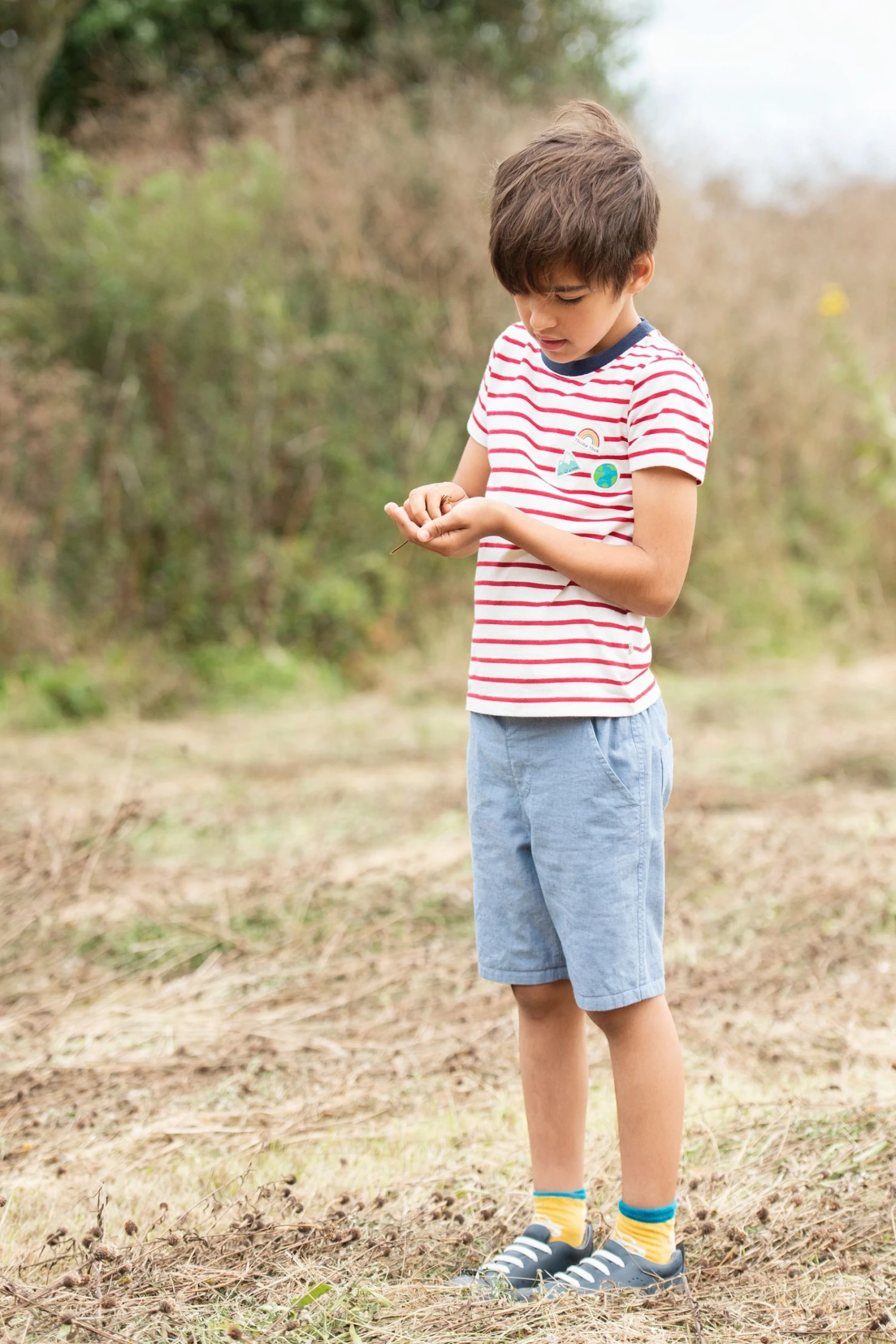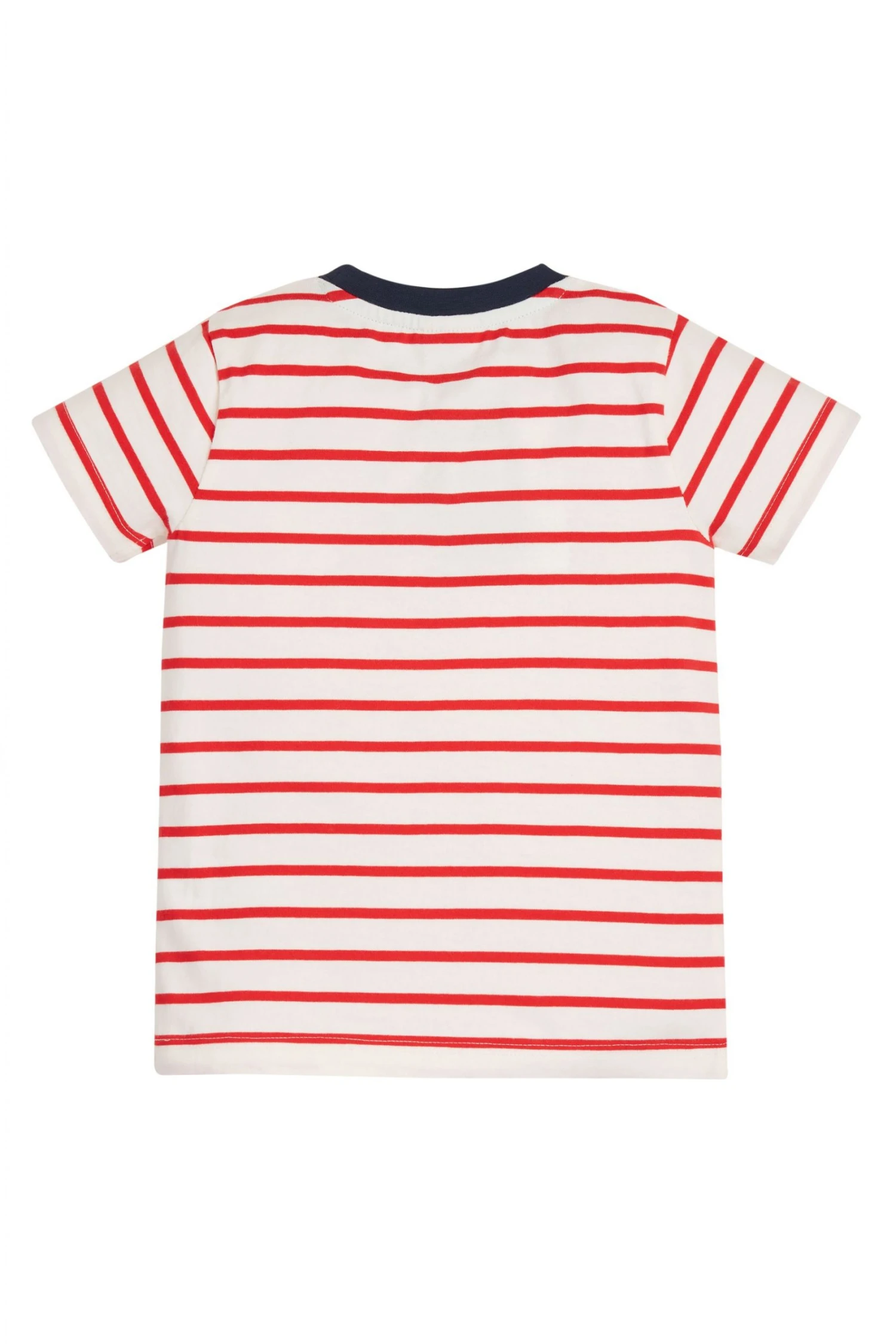 Follow your Rainbow! This fun, playful striped short sleeve T-shirt featured applique badge detailing. Made from Organic Cotton.