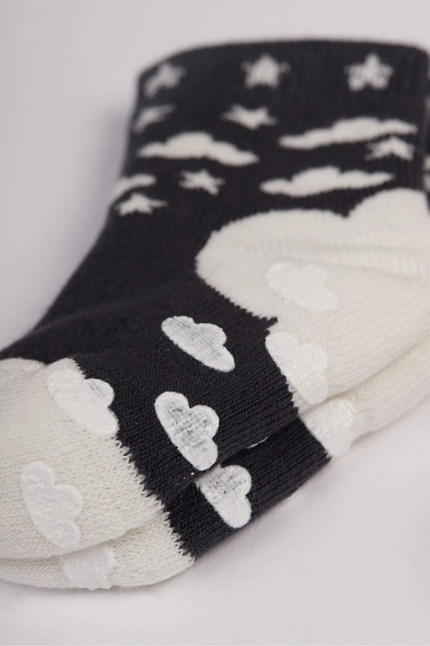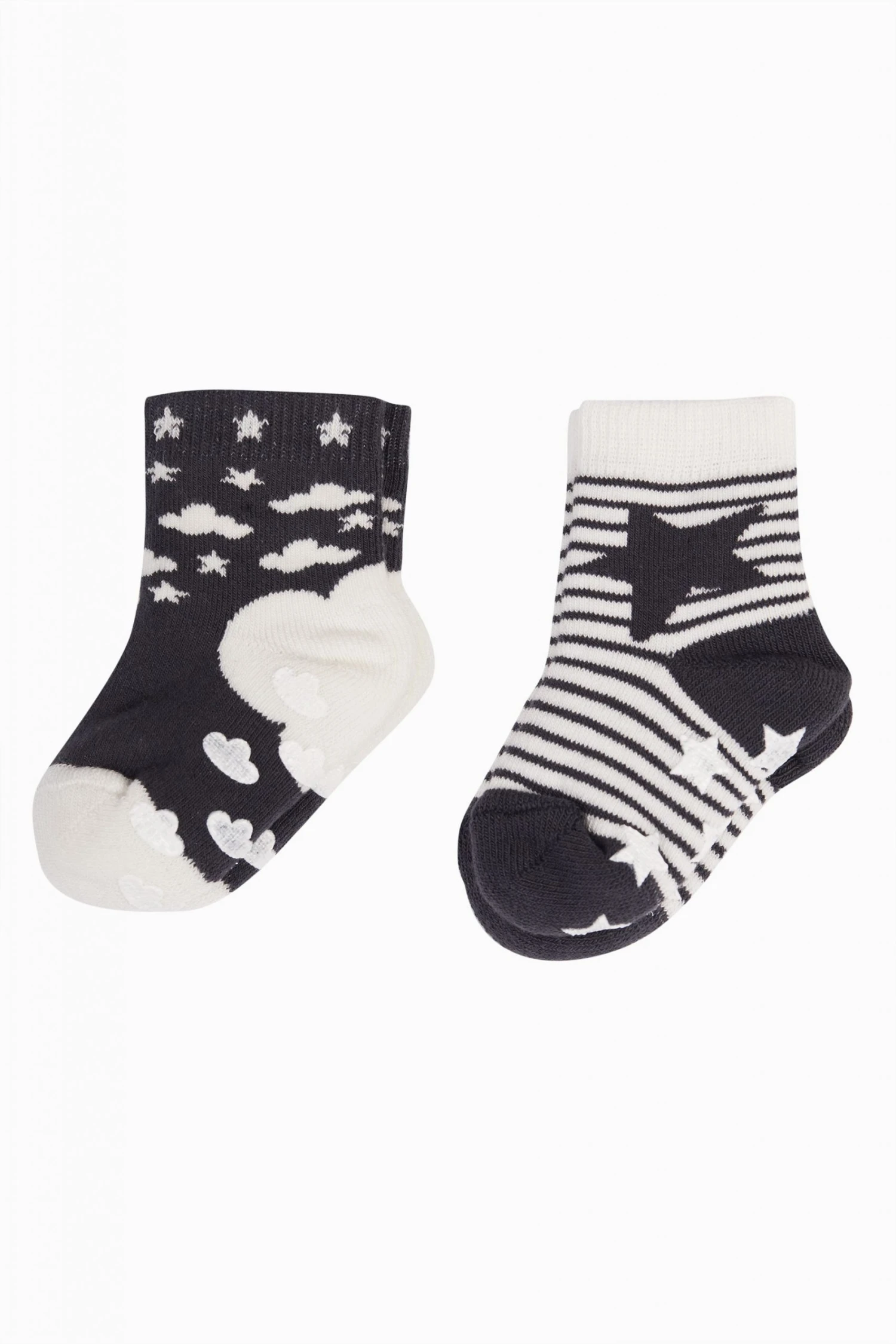 A baby and toddler essential; these two pack of terry knit socks are supersoft. Features a grippy print sole which is perfect for crawlers and walkers alike!