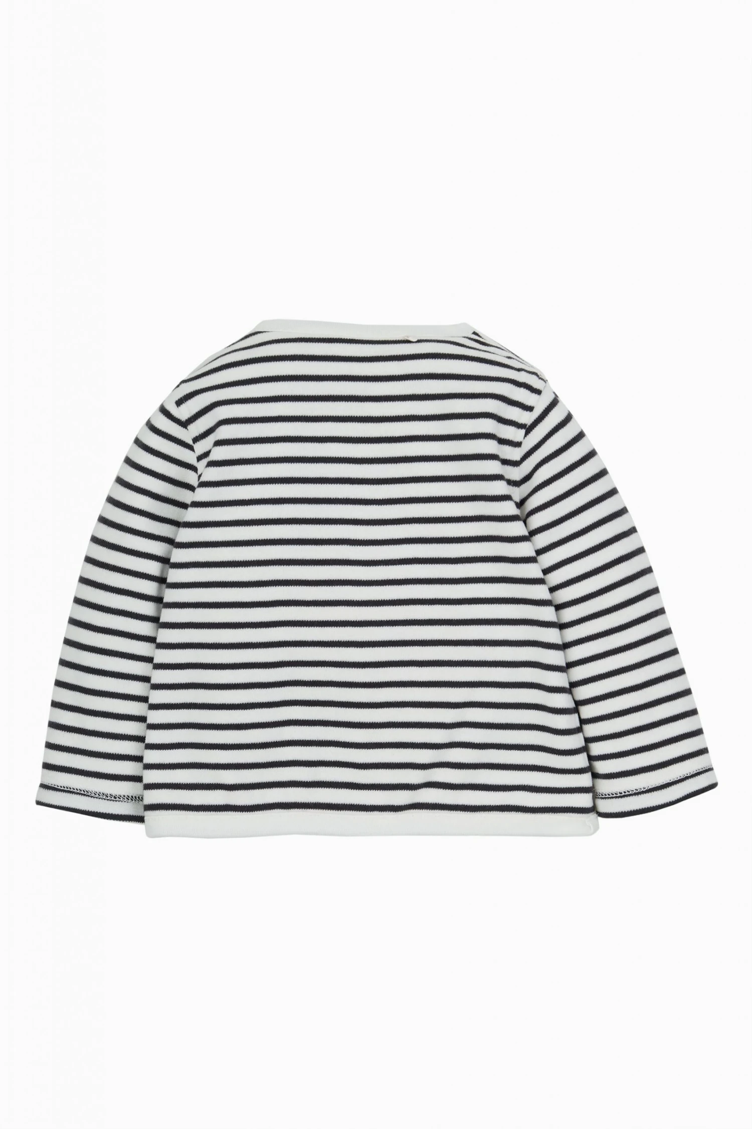 Two super cute jackets in one! This soft and snuggly organic cotton interlock reversible jacket has pocket detail and snap fastening.
